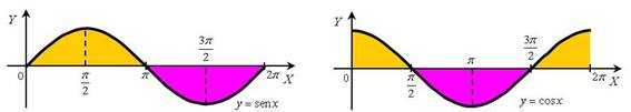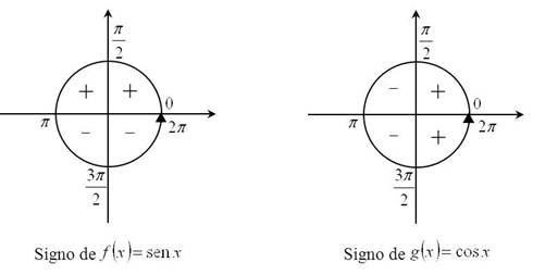 Figura 1.5.2 Signo de las funciones seno y coseno en el intervalo .