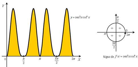 . Podemos comprobar una vez más la existencia de cuatro trozos de igual área en la región del plano encerrada entre la curva y el eje